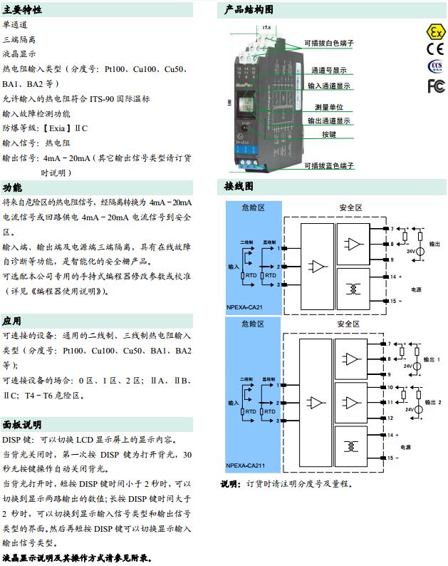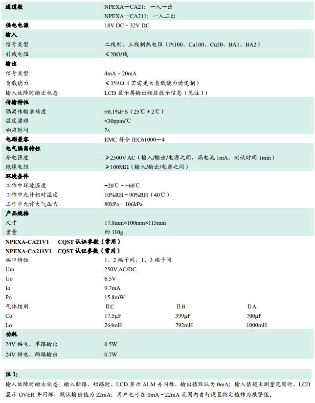 NPEXA-CA21,NPEXA-CA211,檢測端隔離式安全柵