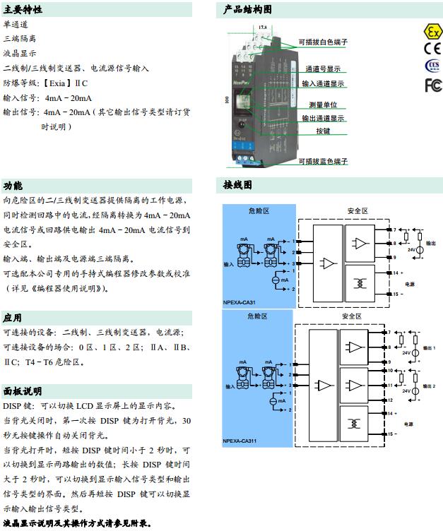 NPEXA-CA31,NPEXA-CA311,檢測端隔離式安全柵