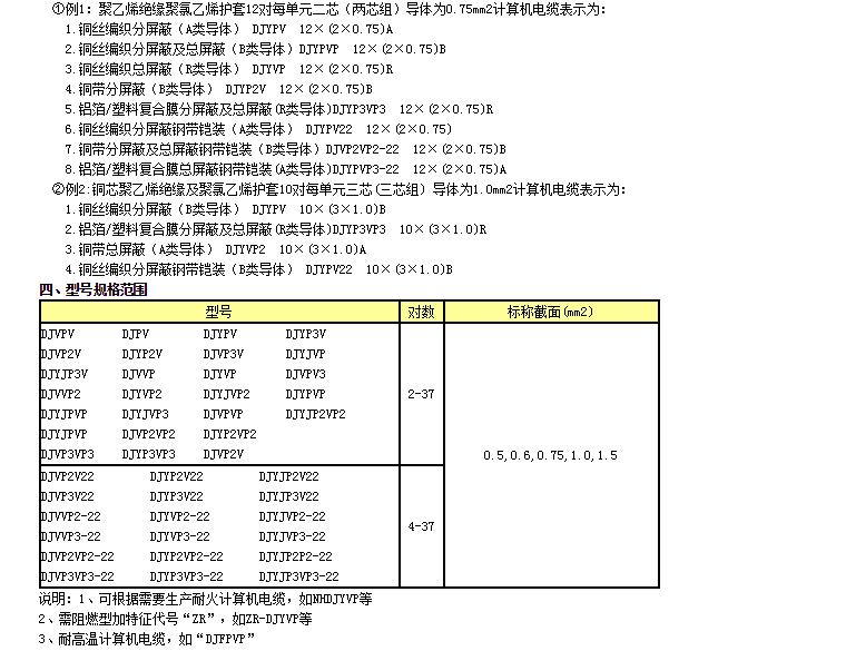 | DJVPVP | 銅芯聚氯乙烯絕緣銅絲編織分屏蔽及總屏蔽聚氯乙烯護套電子計算機電纜 |