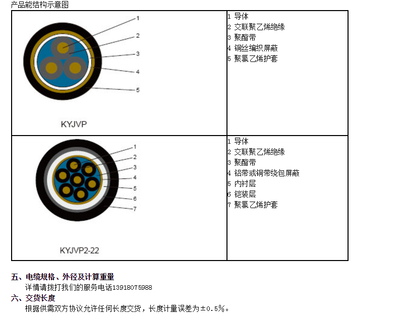 | KYJV22 | 銅芯交聯(lián)聚乙烯絕緣鋼帶鎧裝聚氯乙烯護套控制電纜 |