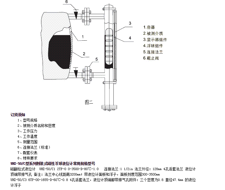 UHZ-50/C12TP-0O-3500-D-80℃-1.0UHZ-50/C1,UHZ-50/C2,UHZ-50/C3,側(cè)裝式磁性浮球液位計(jì)