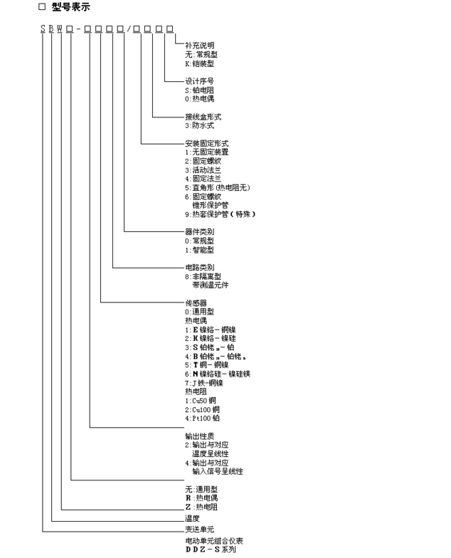1、輸入信號:熱電偶:K、E、J、B、S、T、N。熱電阻:Pt100、Cu50、Cu100(三線制、四線制)。智能型溫度變送器的輸入信號可通過手持器和PC機(jī)任意設(shè)置;