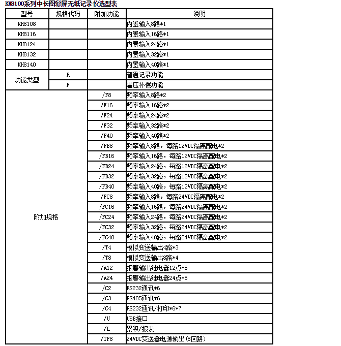 KH8100中長圖彩屏無紙記錄儀,40路萬能輸入,可輸入標準電流、標準電壓、頻率、毫伏、熱電偶、熱電阻等信號。具有傳感器隔離配電輸出、繼電器報警輸出、變送輸出、流量積算、溫壓補償、歷史數(shù)據(jù)轉(zhuǎn)存、打印以及遠程通訊功能。