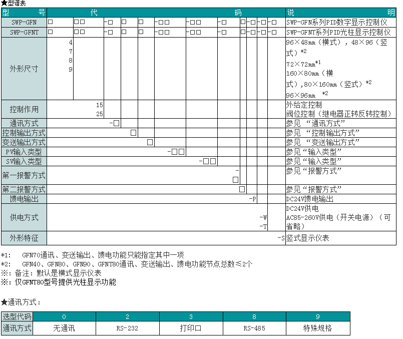SWP-GFN系列高精度型PID自整定數(shù)字/光柱顯示控制儀(外給定或閥位控制)適用于需要進(jìn)行高精度測(cè)量控制的系統(tǒng),可取代放大器直接驅(qū)動(dòng)執(zhí)行的機(jī)構(gòu)(如閥位等),集數(shù)字儀表與模擬儀表于一體,可對(duì)溫度、壓力、液位、速度等測(cè)量信號(hào)進(jìn)行數(shù)字量顯示控制(高亮度LED數(shù)碼顯示)及相對(duì)模擬量顯示(光柱顯示),使測(cè)量值的顯示更為清晰直觀,并可選擇雙光柱顯示方式。