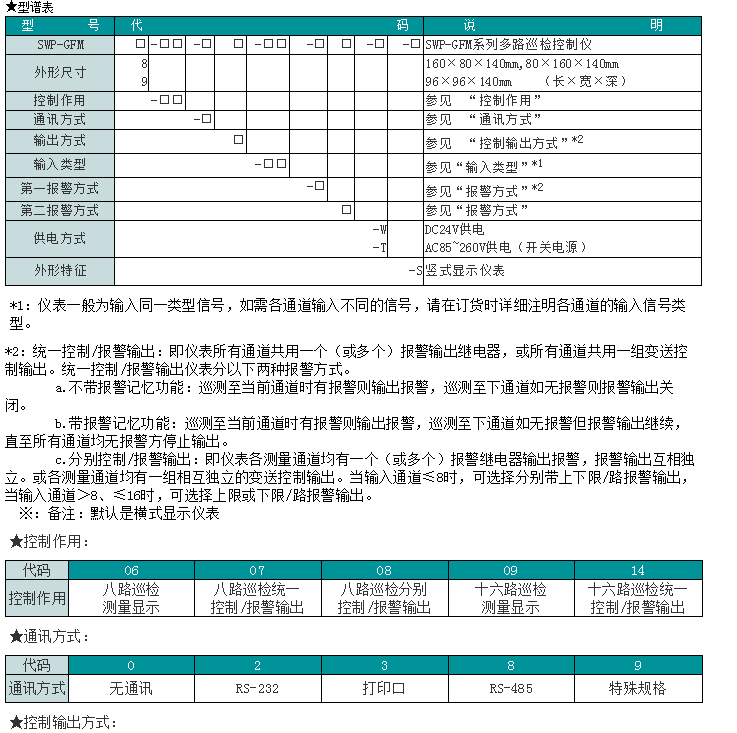 SWP-GFM系列多路巡檢控制儀用于工業(yè)控制系統(tǒng)多測量點(diǎn)的巡回檢測、顯示和報(bào)警。16通道全隔離輸入,可對溫度、壓力、液位、速度等測量信號進(jìn)行數(shù)字量顯示控制(高亮度LED數(shù)碼顯示),使測量值的顯示更為清晰直觀。