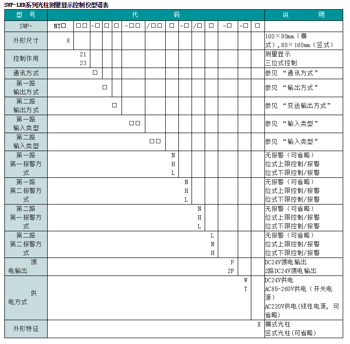 SWP-LED系列雙回路數(shù)字顯示控制儀型譜表