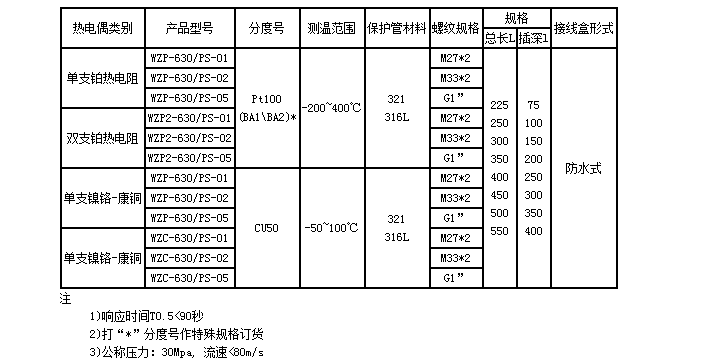 根據(jù)國(guó)家規(guī)定,我廠從1987年起開始生產(chǎn)符合lEC國(guó)際標(biāo)準(zhǔn)分度號(hào)的Pt1OO鉑熱電阻和符合專業(yè)標(biāo) 準(zhǔn)分度號(hào)的Cu50銅熱電阻兩大類裝配式、統(tǒng)一設(shè)計(jì)型熱電阻;