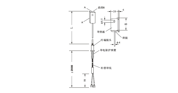 鍋爐爐壁熱電偶外形尺寸