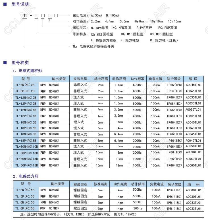 TL-8N(NC)2B,TL-8P(PC)2B,TL-12N(NC)2B,TL-12P(PC)2B,TL-12N(NC)4B,TL-12P(PC)4B,TL-18N(NC)5B,TL-18P(PC)5B,TL-18N(NC)8B,TL-18P(PC)8B TL-30N(NC)10B,TL-30P(PC)10B,TL-30N(NC)15B,TL-30P(PC)15B,TL-EN(NC)5B,TL-EP(PC)5B,TL-QN(PC)5B,TL-QP(PC)5B