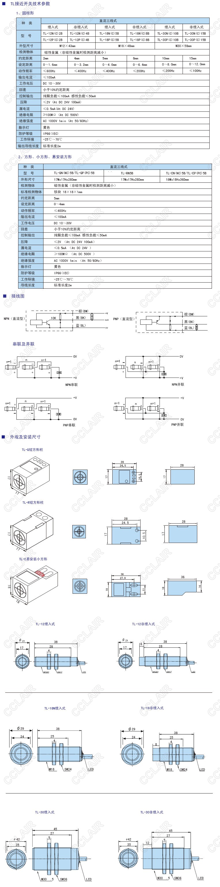TL-8N(NC)2B,TL-8P(PC)2B,TL-12N(NC)2B,TL-12P(PC)2B,TL電感式接近傳感器