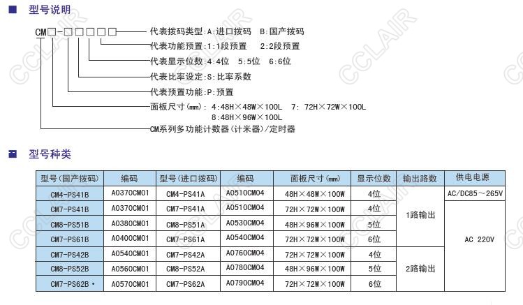 CM4-PS41B,CM7-PS41B,CM8-PS51B,CM7-PS61B,CM7-PS42B,CM8-PS52B,CM7-PS62B,CM多功能計數(shù)器/計米器/定時器