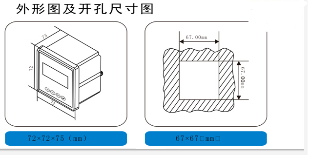 PD204U-AK4,智能三相電壓表 產(chǎn)品概述 72方形    外形:72*72mm    開孔:67*67mm