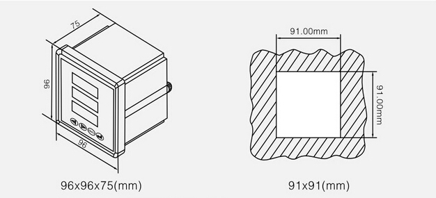 HD284U-9X4數(shù)顯三相電壓表 產(chǎn)品概述 96方形 外形:96*96mm 開(kāi)孔:91*91mm
