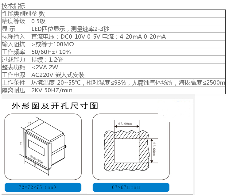 規(guī)格:DC0-10V信號(hào),顯示50HZ