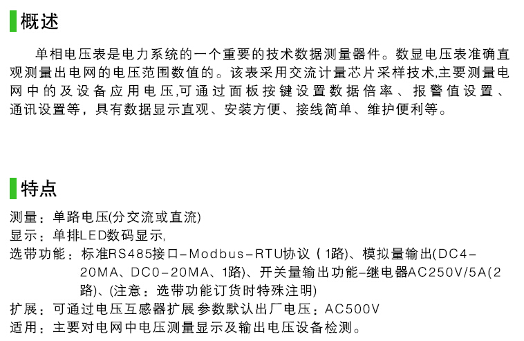 PD204U-9K1智能單相電壓表采用交流采樣技術(shù)真有效值測(cè)量,能同時(shí)測(cè)量顯示電網(wǎng)中的單相電壓0到450V,可通過面板按鍵設(shè)置編程及 倍率,性價(jià)比極高。具有安裝方便、接線簡單、維護(hù)便利、工程量小、現(xiàn)場可編程設(shè)置輸入?yún)?shù)等特點(diǎn),可擴(kuò)展帶485通訊協(xié)議