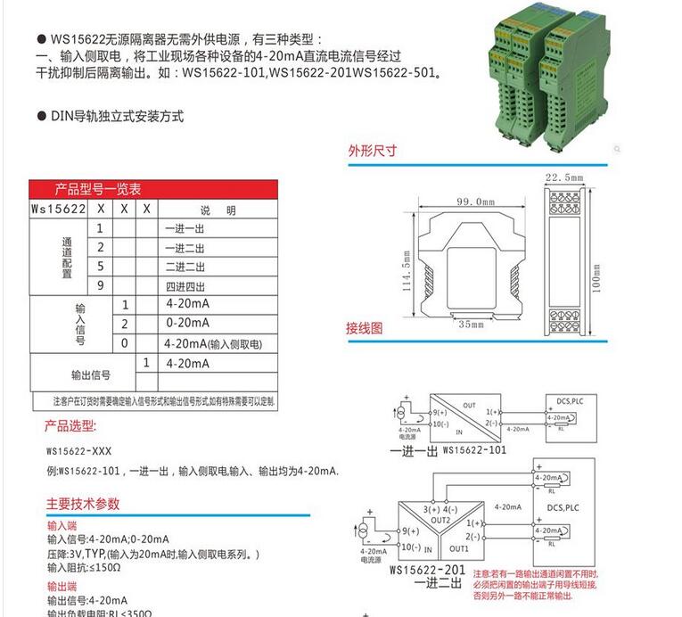 WS15622無源電流轉(zhuǎn)換模塊,電流分配器,全隔離信號(hào)隔離器,將輸入的四路信號(hào)隔離輸出,無需外接電源可正常工作,輸入輸出隔離,傳輸精度高,標(biāo)準(zhǔn)DIN T型導(dǎo)軌安裝