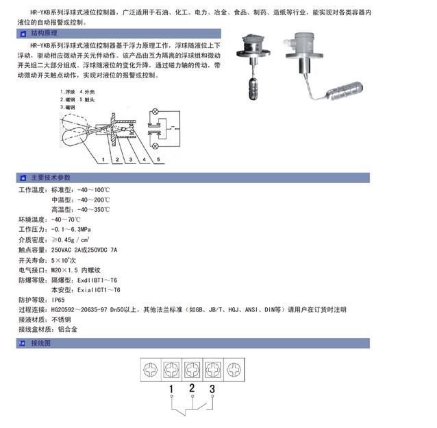 HR-YKB系列浮球式液位控制器,廣泛適用于石油、化工、電力、冶金、食品、制藥、造紙等行業(yè),能實現(xiàn)對各類容器內(nèi)液位的自動報警或控制。