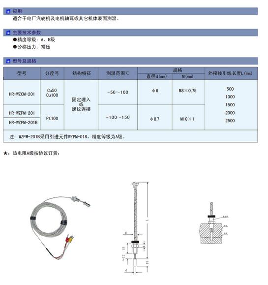 HR-WZCM-201,HR-WZPM-201,HR-WZPM-201B,端面熱電阻