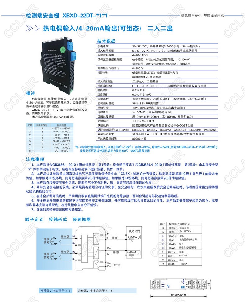 XBXD-22DT-11熱電偶輸入/4-20mA輸出(可組態(tài))(二入二出)