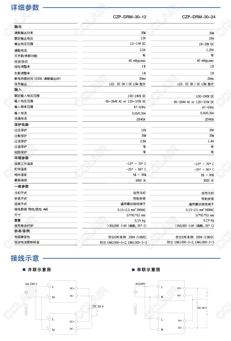 CZP-DRM-30-24 導(dǎo)軌型開關(guān)電源30W/24V輸出
