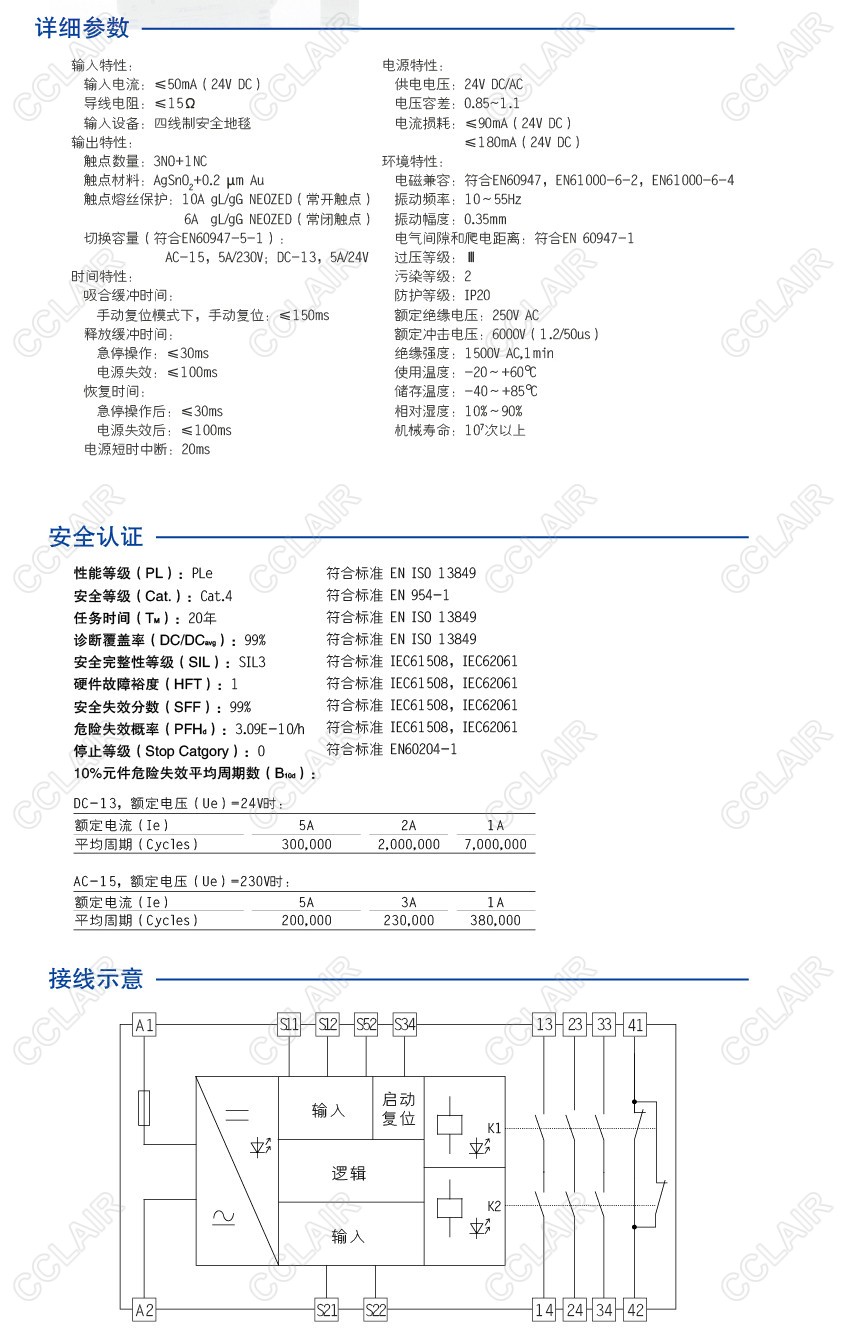 CZSR8301-3A1B(M)是適用于安全地毯輸入,具有3路NO(常開(kāi))安全輸出觸點(diǎn)和1路NC(常閉)輔助輸出觸點(diǎn)的安全繼電器。它支持雙通道操作,手動(dòng)復(fù)位,并具有復(fù)位按鈕監(jiān)控功能。