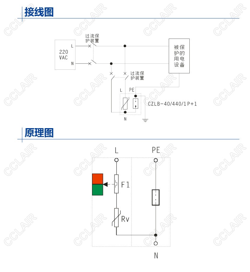 交流電源型SPD,40kA(8/20us),適合220/380VAC電源單相TT系統(tǒng),安裝于防雷分區(qū)LPZ1與LPZ2