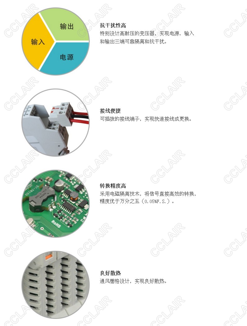 信號類型和測量范圍可編程,PT100冷端傳感器,高精度自動冷端補償,超量程、斷線檢測與報警功能。