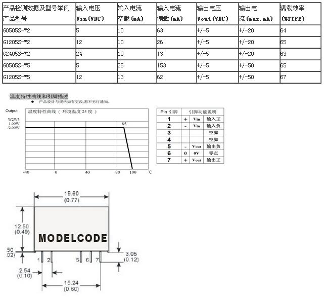 G系列 GxxxxS-xW 6KVDC隔離 0.1W ~2W 穩(wěn)壓正負(fù)雙輸出 SIP7腳封裝
