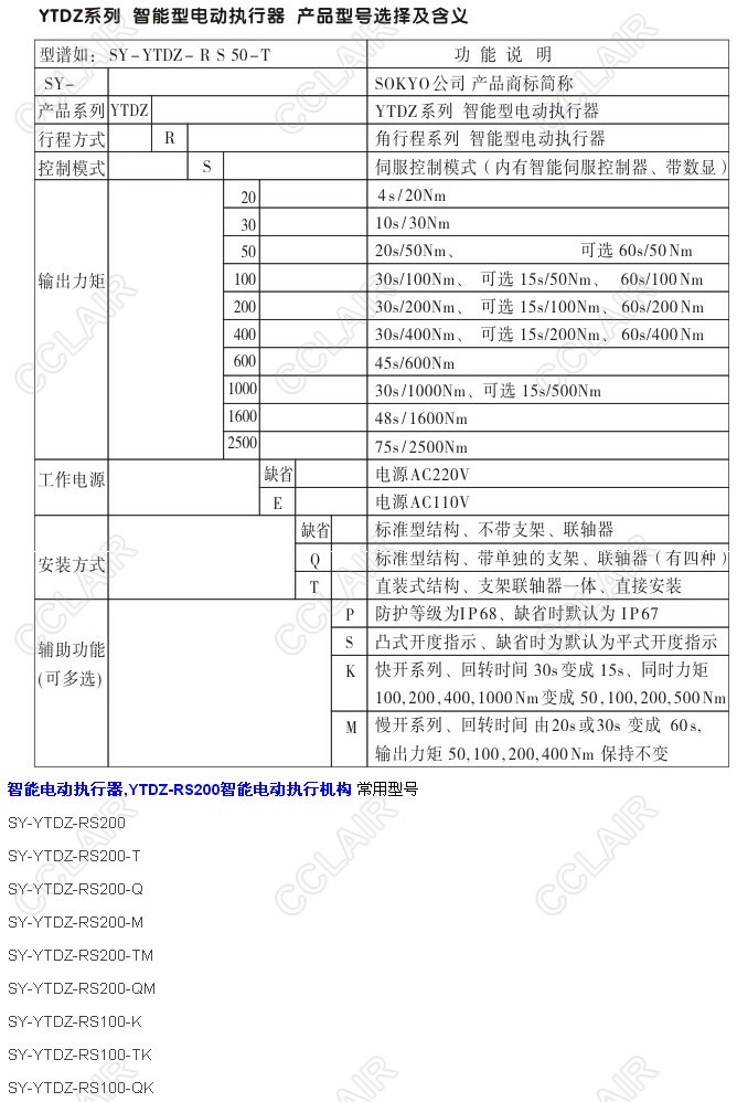 SY-YTDZ-RS200,SY-YTDZ-RS200-T,SY-YTDZ-RS200-Q,YTDZ-RS200智能電動(dòng)執(zhí)行機(jī)構(gòu)