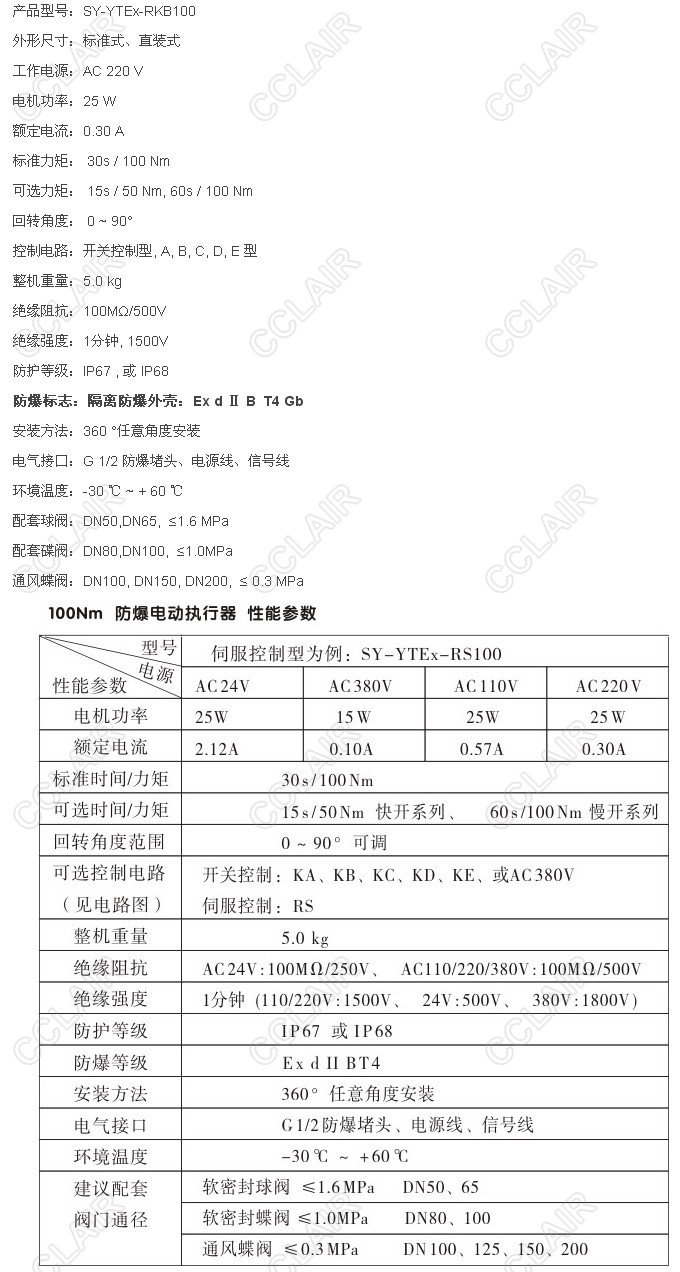SY-YTEX-RKB100,SY-YTEX-RKB100-T,SY-YTEX-RKB100-Q,YTEX-RKB100防爆電動(dòng)執(zhí)行器