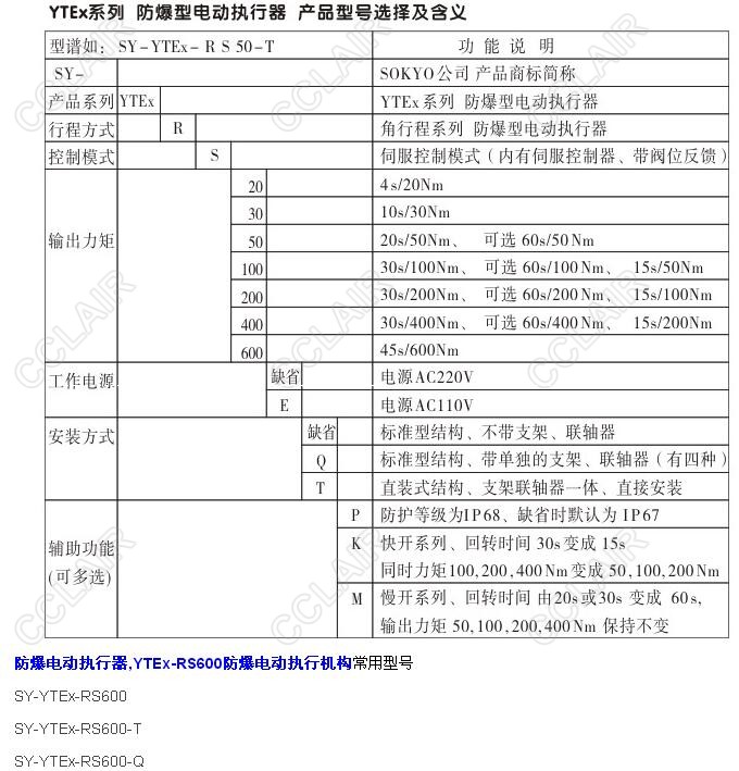 SY-YTEX-RS600,SY-YTEX-RS600-T,SY-YTEX-RS600-Q,YTEX-RS600防爆電動(dòng)執(zhí)行機(jī)構(gòu)