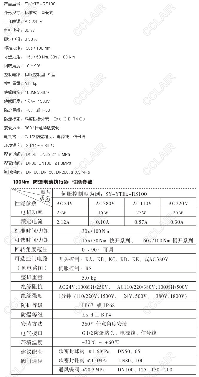 SY-YTEX-RS100,SY-YTEX-RS100-T,SY-YTEX-RS100-Q,YTEX-RS100防爆電動(dòng)執(zhí)行機(jī)構(gòu)