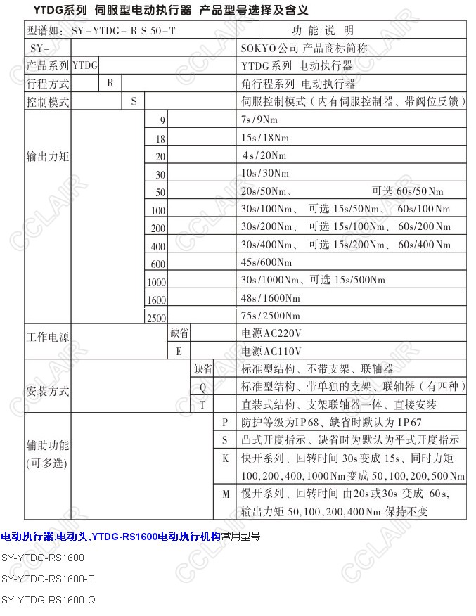 SY-YTDG-RS1600,SY-YTDG-RS1600-T,SY-YTDG-RS1600-Q,YTDG-RS1600電動執(zhí)行機(jī)構(gòu)