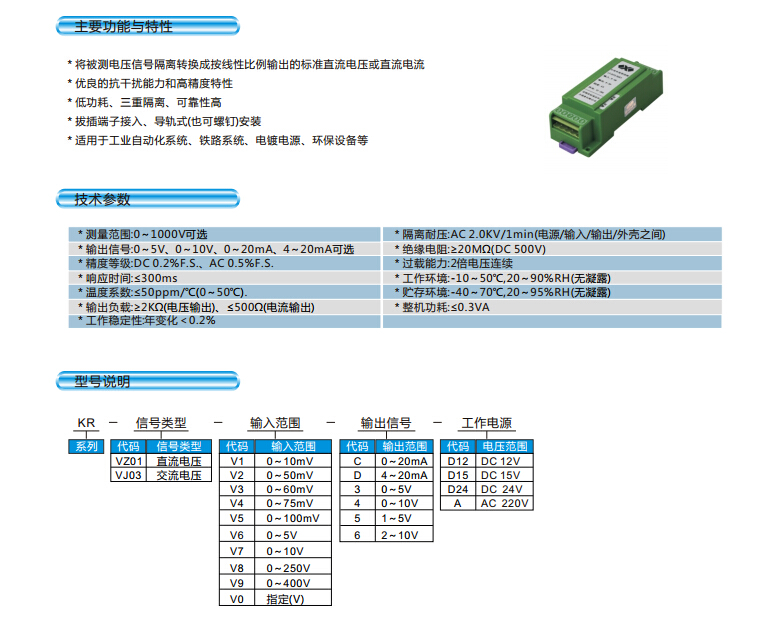 KR-VZ01,KR-VJ03 單相電壓隔離變送器