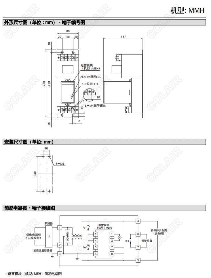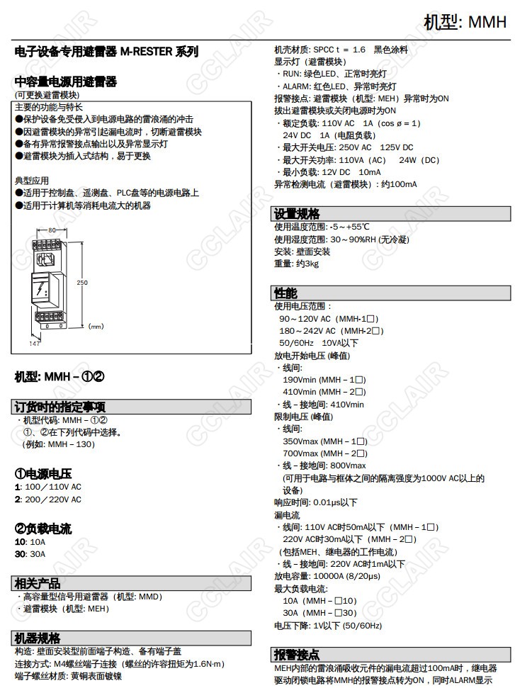 MMH-110/MMH-130/MMH-210/MMH-230,最大負(fù)載10A、30A 可更換元件避雷器