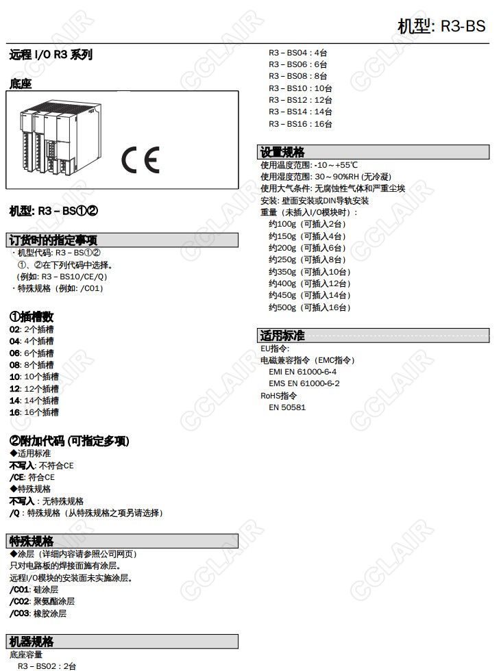 R3-BS,R3-BS10/CE/Q,R3-BS02,R3-BS04,R3-BS06,R3-BS08,R3-BS10,R3-BS12,2~16個(gè)模塊用底板R3-BS14,R3-BS16,