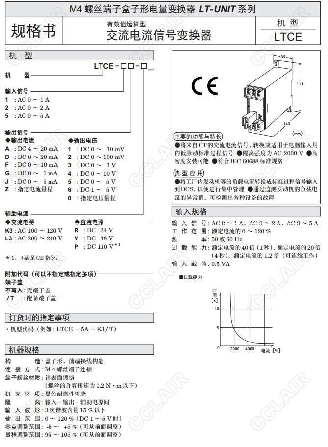 LTCE,LTCE-5A-K3/T,LTCE-1,LTCE-2,LTCE-5,交流電流信號(hào)變換器(有效值運(yùn)算型)