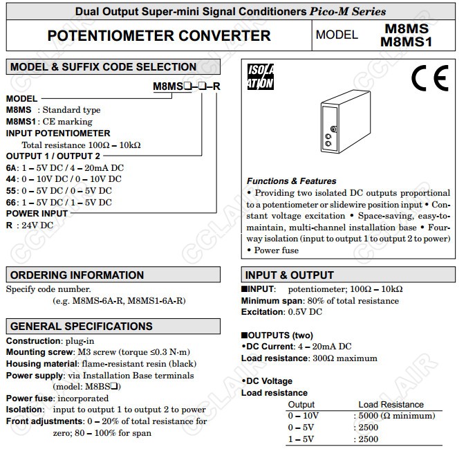 M8MS,M8MS-6A-R,M8MS1-6A-R,M8MS1-44,M8MS1-55,M8MS1-66,Potentiometer Converter模塊