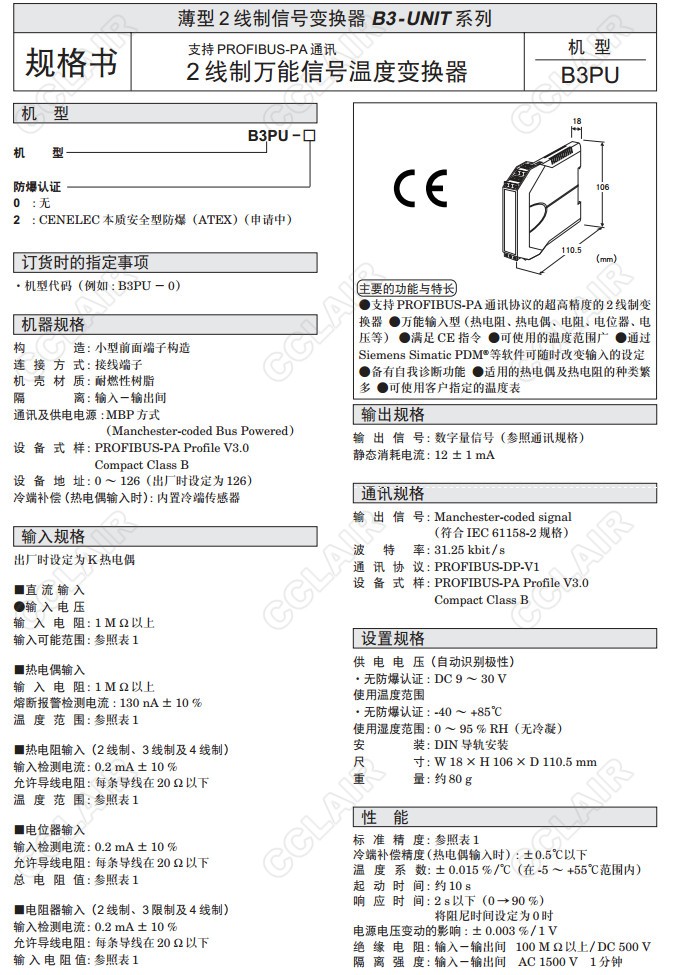 B3PU,B3PU-0,B3PU-2,2線制萬(wàn)能信號(hào)溫度變換器(支持PROFIBUS-PA通訊)
