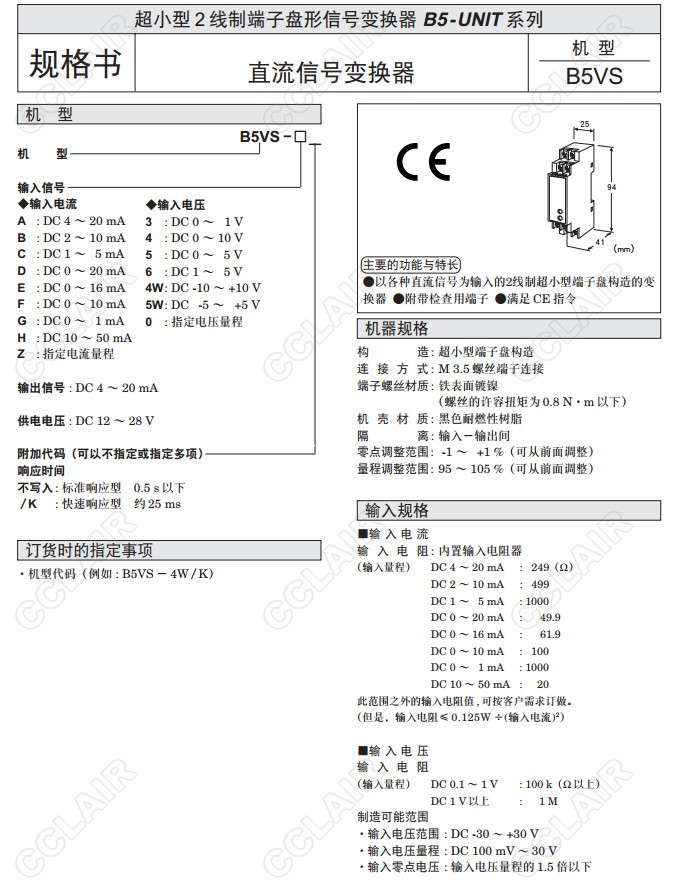 B5VS,B5VS-4W/K,B5VS-A,B5VS-B,B5VS-C,B5VS-D,B5VS-E,B5VS-F,B5VS-G,B5VS-H,直流信號(hào)變換器 |
