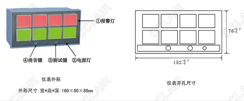 2. 輸出信號:八點發(fā)光報警指示,具有音響接點輸出報警,音響動作為接點閉合。