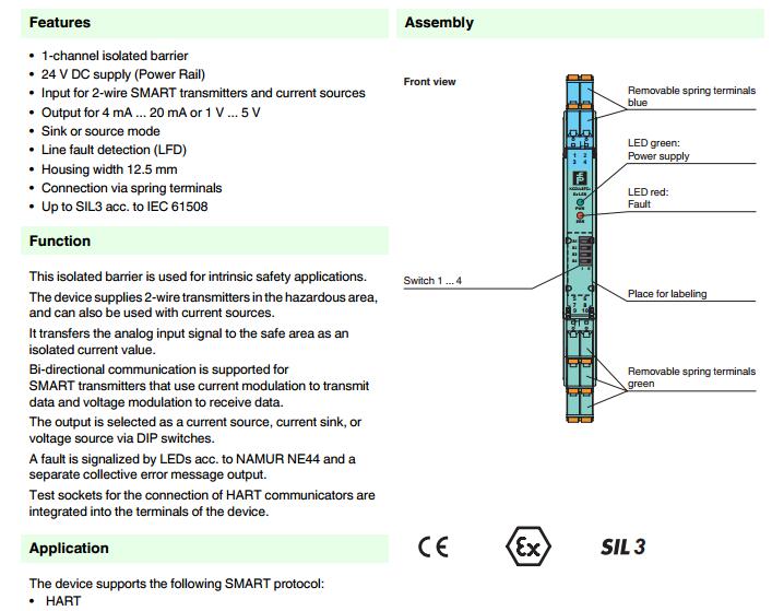 KCD2-STC-Ex1.ES.SP,模擬量輸入安全柵