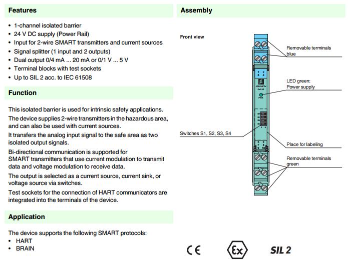 KCD2-STC-Ex1.2O,模擬量輸入安全柵