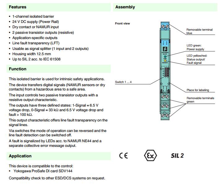 KCD2-SON-Ex1.R1,開關(guān)量輸入安全柵