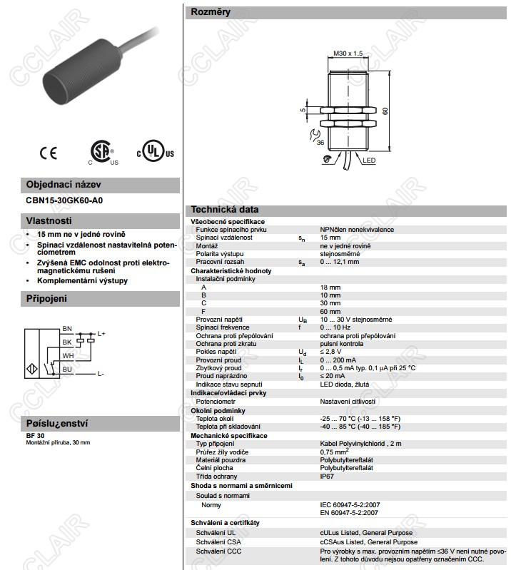 CBN15-30GK60-A0,電容式接近開關(guān)