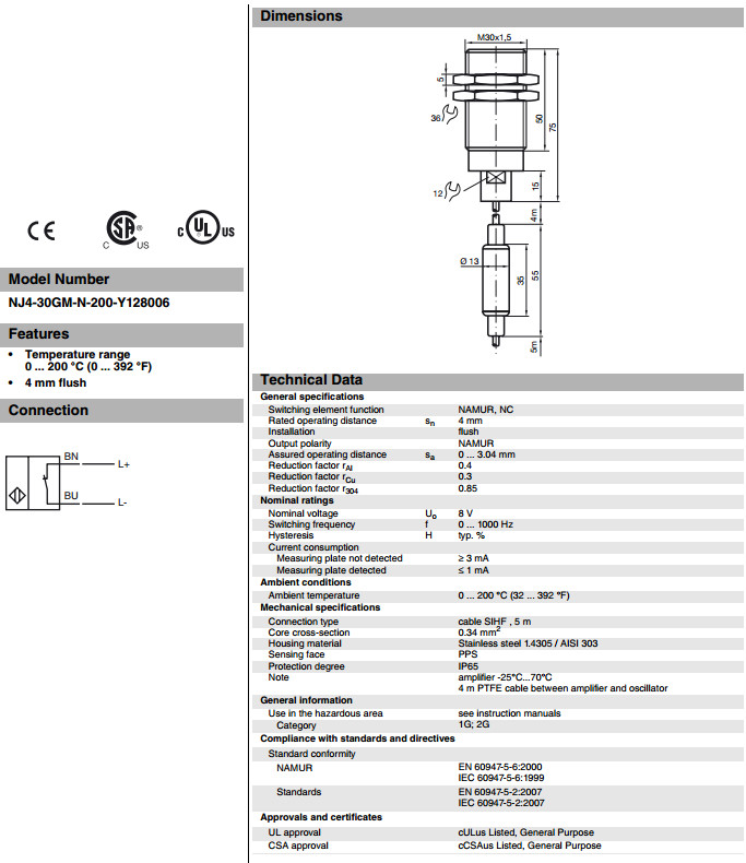 NJ4-30GM-N-200-Y128006電感式接近開(kāi)關(guān)