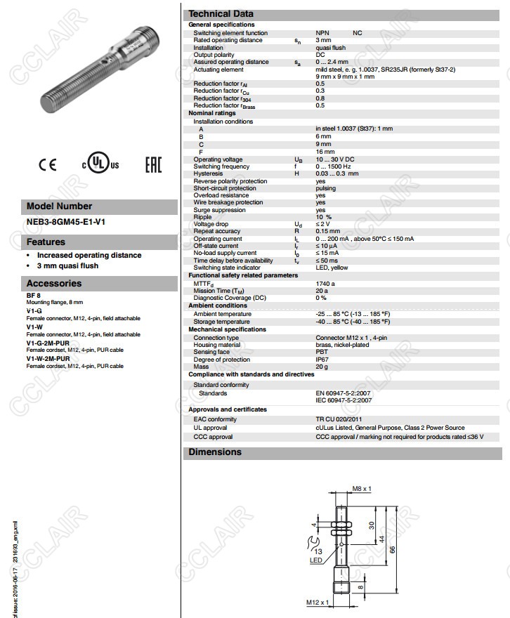 NEB3-8GM45-E1-V1,電感式接近開(kāi)關(guān)
