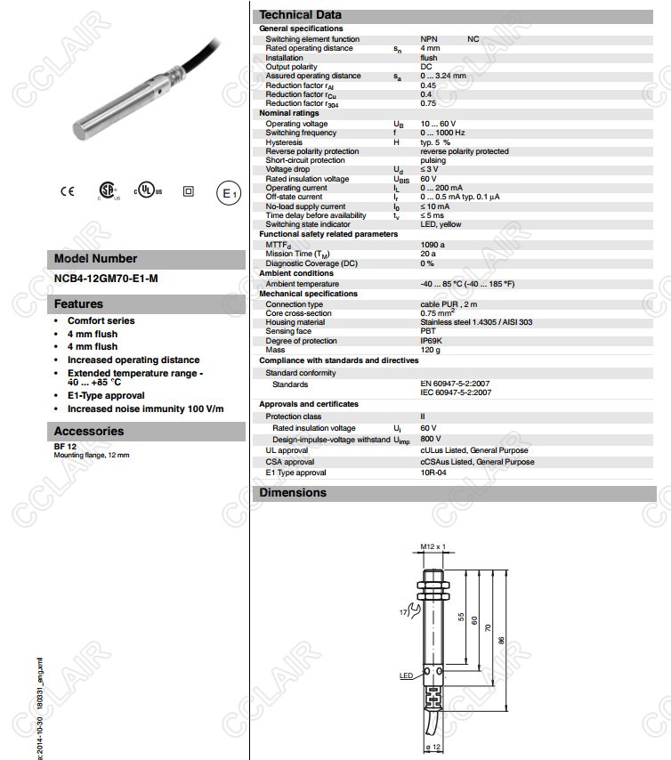 NCB4-12GM70-E1-M,NCB4-12GM70-E2-M,NCB4-12GM70-E3-M