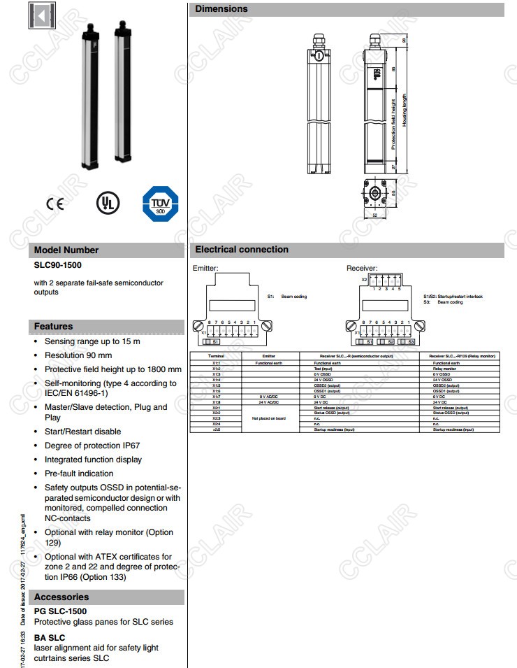 SLC90-1200-S,SLC90-1200/31,SLC90-1500,SLC90-1500-S,SLC90-1500/31,安全光柵