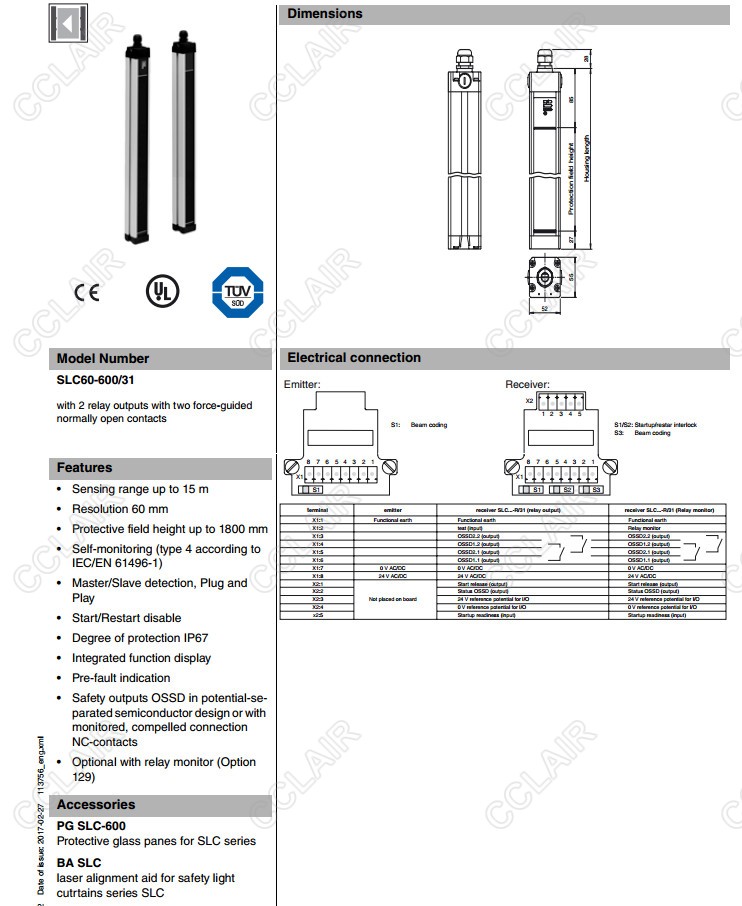 SLC60-600-S,SLC60-600/31,SLC60-900,SLC60-900/31,SLC90-1200,安全光柵